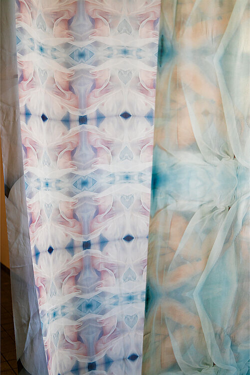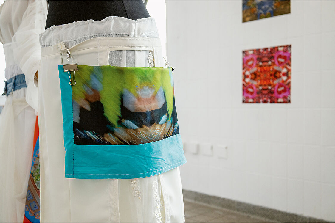 Im Bereich Textilgestaltung zeigen die Studierenden in einer selbst konzipierten Präsentation einen vielfältigen Querschnitt kreativer Ansätze – von textilen Experimenten bis hin zu interdisziplinären Projekten. Die Ausstellung gibt auch dieses Mal wieder einen faszinierenden Einblick in die unterschiedlichen Seminare und Semester der letzten Jahre, welcher die Bandbreite technischer, gestalterischer und theoretischer Auseinandersetzungen widerspiegelt. Dazu zählen auch Beiträge aus kulturwissenschaftlichen Seminaren, darunter Podcasts, die Verbindungen zwischen popkulturellen Phänomenen in Musik und Mode analysieren. Eine Installation im Treppenhaus reflektiert das Problem des Raumes, den dreidimensionale Arbeiten für Ihre Entfaltung benötigen, den sie gestalten und neu definieren.