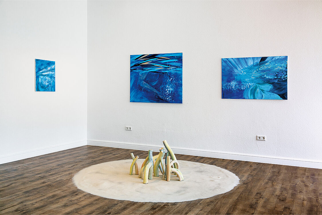 Die künstlerische Auseinandersetzung mit «Wasser» galt und gilt in der Kunst stets als eine immense Herausforderung, das machen auch die hier versammelten 12 Positionen deutlich. Wasser ist in ständiger Bewegung, wechselt permanent Zustand, Aussehen und Farbe und entzieht sich somit einer einzigen Festlegung und eindeutigen Bestimmung. Dadurch treten andere, neue Eigenschaften und Erscheinungsweisen umso stärker hervor, wie Strukturen, Linien und Formen, womit auch neue Beschreibungsweisen und damit auch weitere Anknüpfungspunkte korrespondieren. Gleichzeitig ist Wasser aber auch realer Raum, Ort, Landschaft, Ereignis, Erfahrung und Erinnerung, wodurch es sich als Projektionsfläche existenzieller Reflexionen anbietet. Auf diese Weise treten die studentischen Arbeiten in immer neue Konstellationen, worüber visuelle Strategien zu Künstler*innen sichtbar werden, die das Wasser als künstlerisches Material nutzen und immer auch Anbindungen an aktuelle Debatten von Klimakrise, Ressourcennutzung, Nachhaltigkeit suchen.