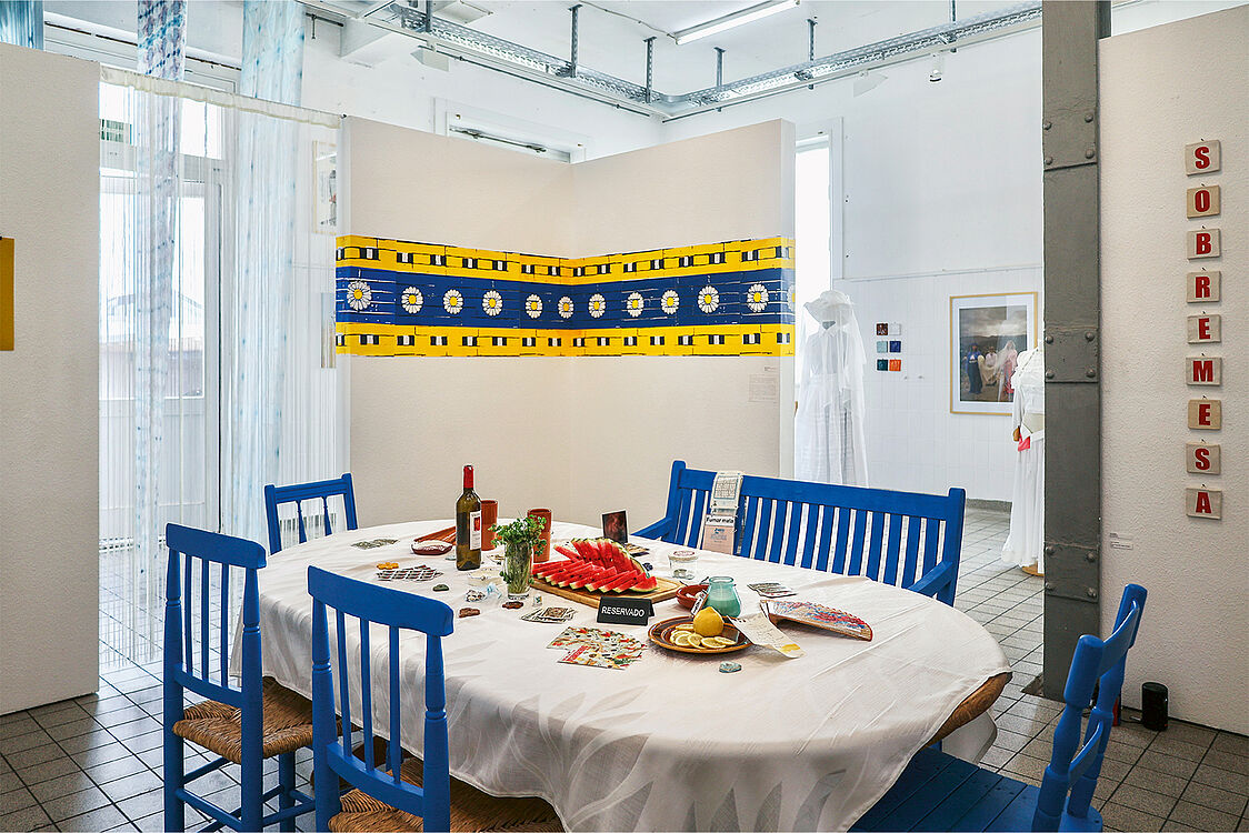 Die Ausstellung versteht die Sobremesa nicht nur als sprachliches Bild, sondern als ästhetisches Prinzip. Viele der gezeigten Arbeiten sind in kollaborativen Formaten entstanden und reflektieren Aspekte gemeinschaftlicher Produktion, kollektiven Denkens und ortsspezifischer Erfahrung. Installationen, Grafiken, Malereien, textile Objekte sowie fotografische und intermediale Arbeiten verhandeln Themen wie Gemeinschaft, Erinnerung, Raum und Atmosphäre. Das Klima, die Topografie und kulturelle Vielschichtigkeit Andalusiens sind dabei auf subtile Weise in die Werke eingeschrieben. Der Ort ist nicht nur Kulisse, sondern Resonanzraum künstlerischer wie sozialer Erfahung.