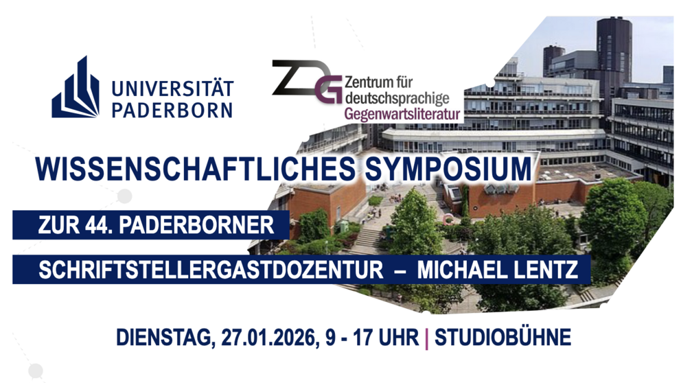 On Tuesday, 27 January 2026, the academic symposium for the 44th Paderborn University Guest Lectureship for Writers will take place in the Studiobühne at Paderborn University. One item on the programme of the symposium is the lecture by Prof. Dr. Christoph Jacke and Joshua Wick, which will take place from 16:15 to 17:00.