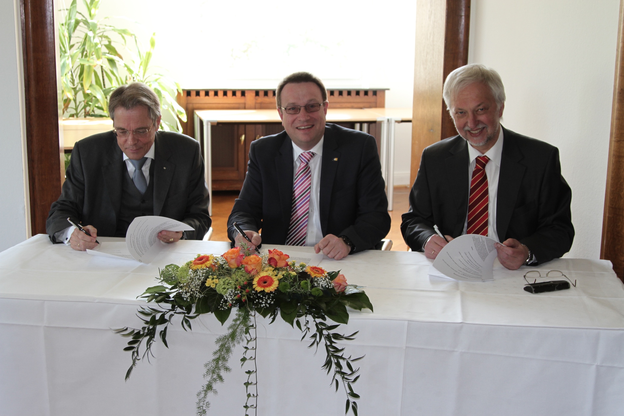 Lippstadt, 21. April 2015. Mit dem Ziel, automobile Lichtsysteme von morgen zu entwickeln, begründeten der Automobilzulieferer HELLA und die Universität Paderborn vor 15 Jahren die Forschungskooperation L-LAB – Lichtlabor für Lichttechnik und Mechatronik. Nun stößt mit der Hochschule Hamm-Lippstadt (HSHL) ein weiterer Partner hinzu, wodurch die Kooperation im Hinblick auf zukünftige Entwicklungsaufgaben ausgebaut und gestärkt wird. Im Rahmen einer Feierstunde wurde der Kooperationsvertrag am 21. April im HELLA Forum von Dr. Jürgen Behrend, geschäftsführender, persönlich haftender Gesellschafter von HELLA, Prof. Dr. Wilhelm Schäfer, Präsident der Universität Paderborn, sowie Prof. Dr. Klaus Zeppenfeld, Präsident der HSHL, unterzeichnet. Im Beisein von Vertretern beider Hochschulen, von HELLA sowie aus Wirtschaft und Politik lobten die Hochschulpräsidenten Zeppenfeld und Schäfer die Entwicklungstätigkeit des L-LAB: „Ein Ort für Innovationen, an dem der Transfer von Wirtschaft und Wissenschaft vorangetrieben wird. Wir freuen uns, diese Arbeit mit unserer Expertise in den Bereichen Lichttechnik, Optik und Photonik zukünftig mitzugestalten“, so der HSHL-Präsident. „Mit ihrem ergänzenden Profil und der damit erweiterten Kooperation wird eine noch erfolgreichere Zusammenarbeit ermöglicht und die Entwicklung innovativer Verfahren im Bereich der automobilen Lichttechnik gestärkt“, so Prof. Dr. Wilhelm Schäfer. Dr. Jürgen Behrend unterstrich weiterhin: „Unsere Wurzeln liegen am Standort Lippstadt in der Lichtentwicklung. Vor diesem Hintergrund freue ich mich, dass wir hier gemeinsam mit Unterstützung der HSHL ein wissenschaftliches Kompetenzzentrum entstehen lassen, um die Entwicklung des Autolichts der Zukunft noch umfassender voranzutreiben.“