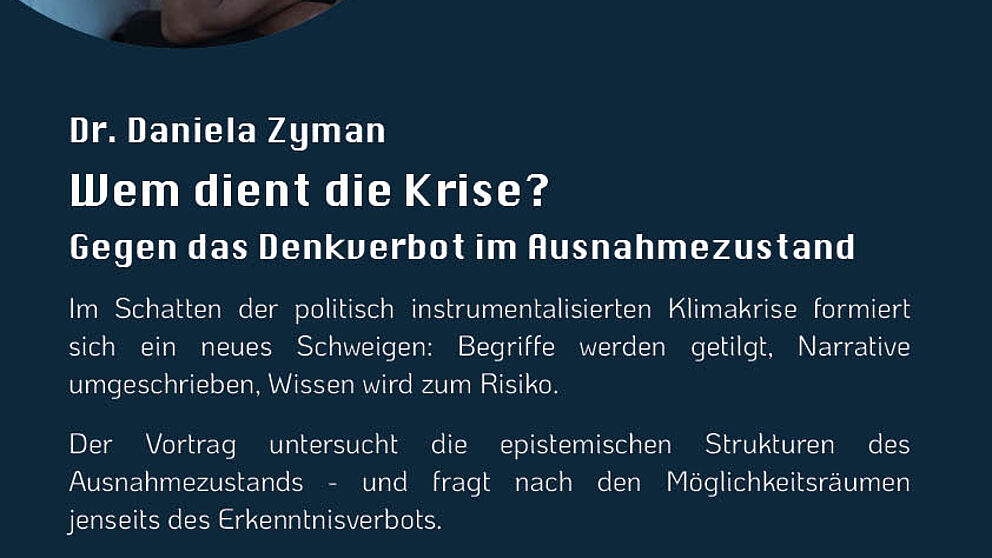 Der Vortrag untersucht die epistemischen Strukturen des Ausnahmezustands – und fragt nach den Möglichkeitsräumen jenseits des Erkenntnisverbots.