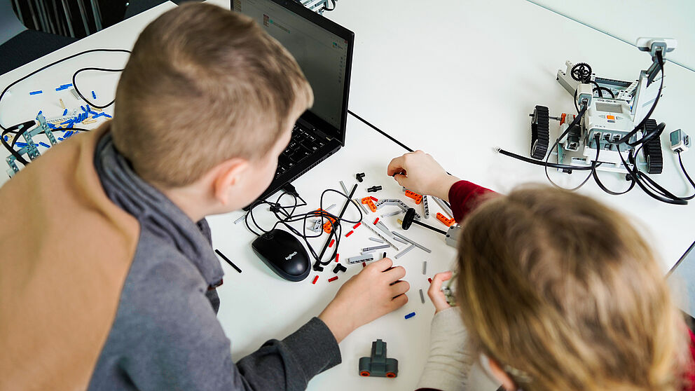 Photo (Paderborn University, Besim Mazhiqi): How can robots and children learn together? This is what the Psycholinguistics group at Paderborn University is investigating.