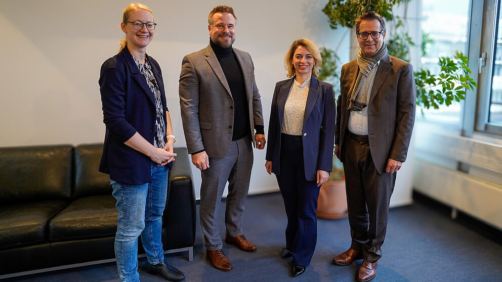 Photo (Paderborn University, Madita Schmalenstroer): (from left) Davina Stiller, Prof Dr Matthias Bauer, Alice Joy Cox and Prof Dr Jörn Steigerwald.