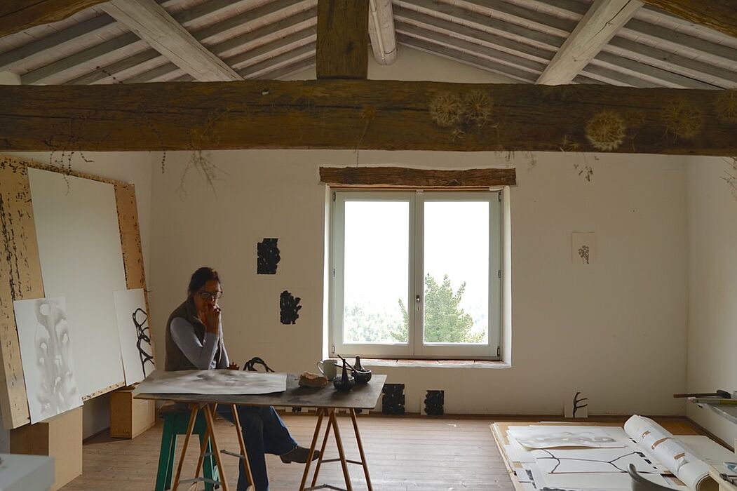 Jeder Morgen war gleich, die Tage flossen dahin. Am Ort sein, schauen, hören, Veränderungen wahrnehmen- die Bewegungen in den Pflanzen im unglaublich kraftvollen Frühling und das Trocknen der Tusche auf dem Papier. Es war dieser intensive Moment, sich ohne eine Idee von 'Zukunft' im Raum zu bewegen.