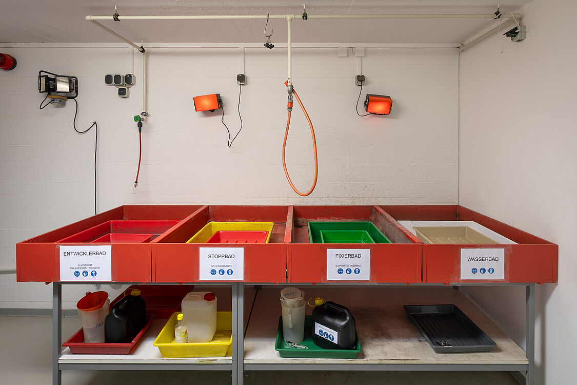 Im Bereich der Fotografie werden seminarbezogene und eigenständige Projekte bearbeitet, bei denen analoge und digitale Verfahren zum Einsatz kommen. Die spezifischen Eigenschaften und Potentiale von analoger und digitaler Fotografie können im Hinblick auf das jeweilige künstlerische Anliegen untersucht und reflektiert werden. Das Fotolabor bietet vor allem die Möglichkeiten zur Schwarzweißentwicklung.