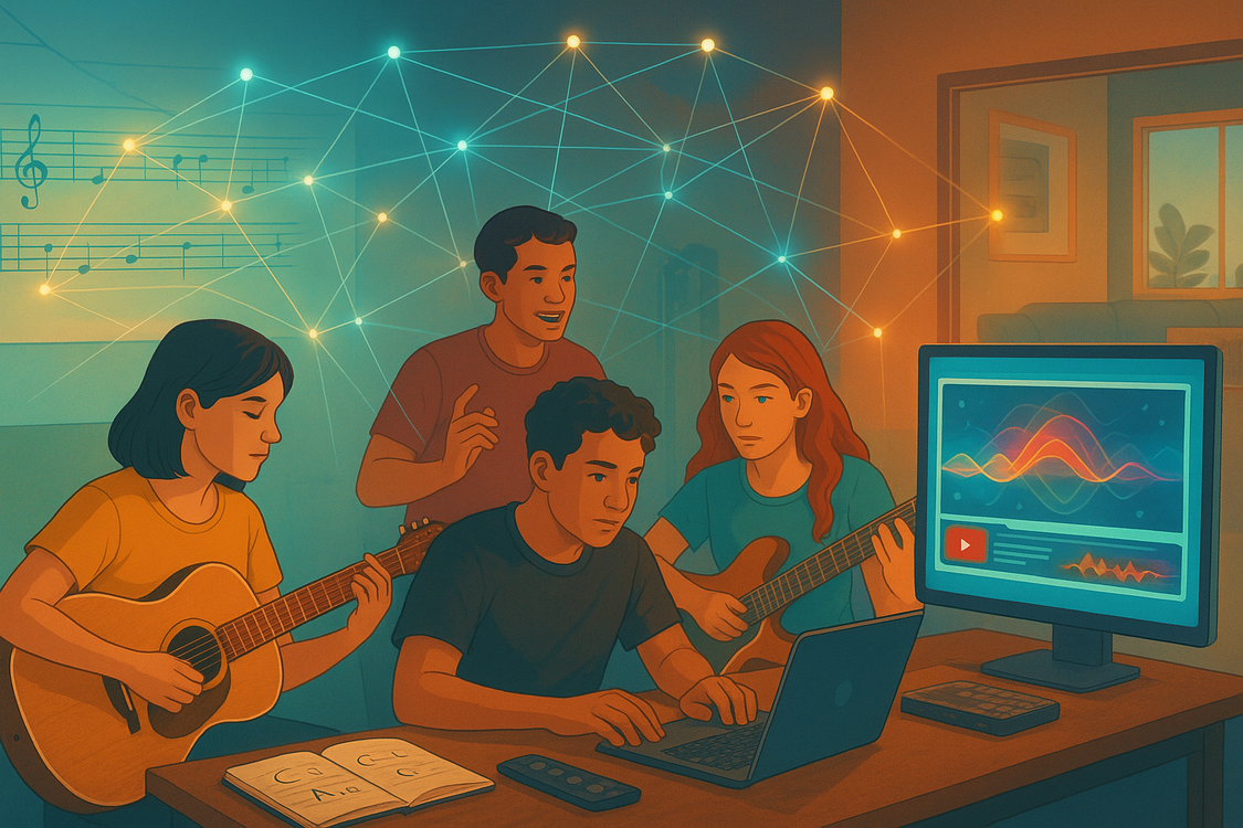Ein weiteres Ergebnis ist, dass viele Prozesse des Lernens und der musikalischen Bildung von den Dingen und Technologien mitgeprägt werden. Musik entsteht heute weniger im Zusammenspiel fester Bands, sondern häufig in temporären Projekten, die Menschen und Technik flexibel zusammenbringen. Fehlt es an Mitmusiker:innen, können digitale Tools und Instrumente diese Lücke teilweise füllen, eröffnen aber auch neue kreative Räume und Selbstermächtigung.