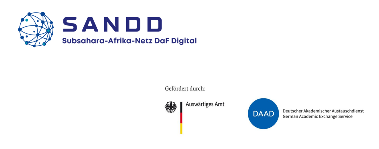 - digital snack #5: 17.03.25, 18-19:30 Uhr: "Abschlussdiskussion zum ersten hybriden SANDD-Fortbildungszyklus "Digitale Kompetenzen und digitale Praktiken in und für DaF in Subsahara Afrika" (Moderation: Elizabeth Waithaka & Katharina Heiler)