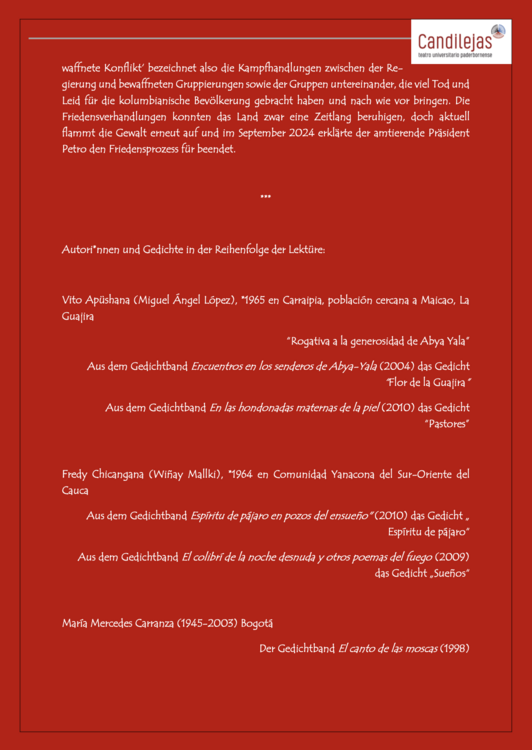 Candilejas, deren Mitglieder Studenten der Hispanistik sind, wurde im Frühling 2008 gegründet und verfolgt eine kreative Auseinandersetzung mit Texten in spanischer Sprache. Neue engagierte Mitglieder sind gerne willkommen.