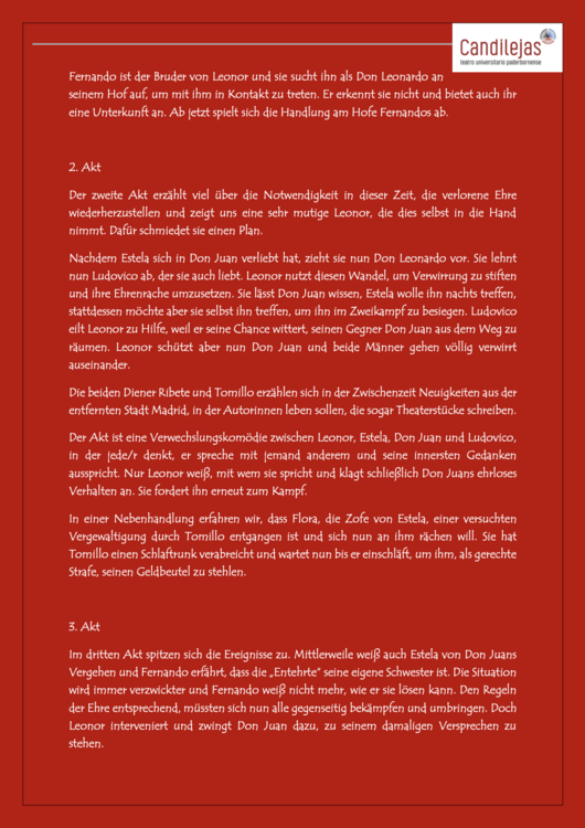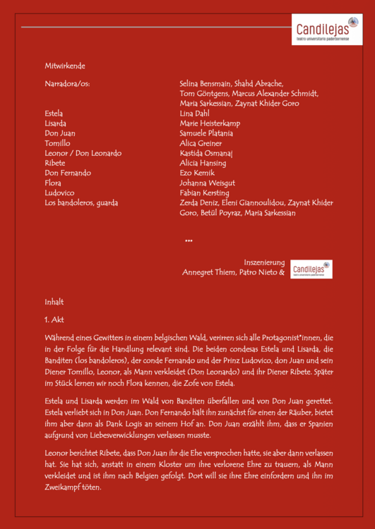 Aktuelles: Zurzeit probt Candilejas La gitanilla von Miguel de Cervantes. Die Aufführungen finden im Juli 2026 statt! |