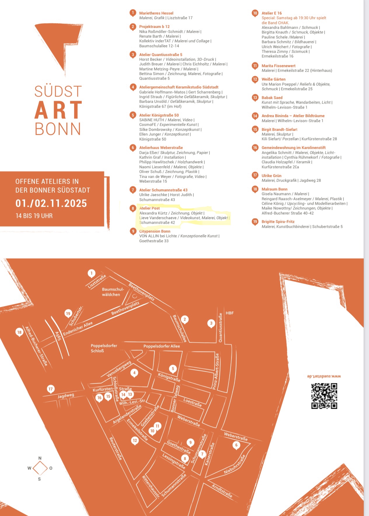 Am Wochenende (Sa/So, 1. und 2. November) beteiligt sich das neue "Atelier Post" (Lieve Vanderschaeve und Alexandra Kürtz) das erste Mal an den offenen Ateliers der SüdtARTbonn.