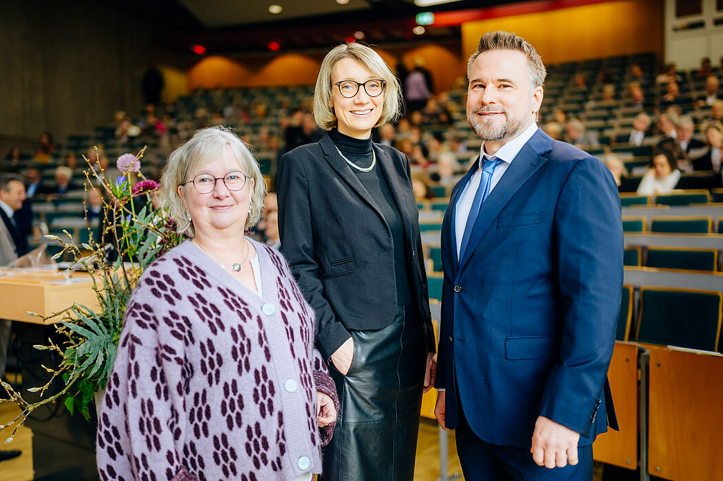Mit den Einsparungen der Landesregierung bei der Grundfinanzierung kam Prof. Bauer auch auf Herausforderungen zu sprechen, die die Universität zwar fordern würden, denen sie durch Transparenz, eine weitsichtige Planung und Gespräche auf Augenhöhe aber begegnen könne. „Und das haben wir als Präsidium gemeinsam mit den Fakultäten gemacht. In einer Kombination von Richtungsdefinitionen und gestalterischer Freiheit. Immer begleitet von offenen und konstruktiven Diskussionen unter gleichmäßiger Berücksichtigung aller Statusgruppen.“ Gleichzeitig machte er aber auch deutlich, dass Einsparungen in der Grundfinanzierung die Leistungsfähigkeit des Wissenschaftssystems berühren – „und damit die Zukunftsfähigkeit und Innovationskraft unseres Landes“. Das bedeute für die Universitäten, das Beste aus der Situation zu machen und dafür zu sorgen, dass die Qualität von Lehre und Forschung keine Einbuße erleide.