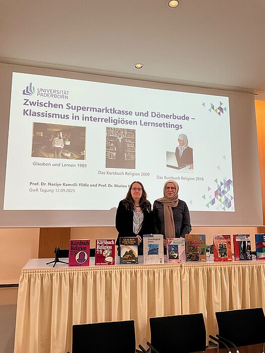Auf der Jahrestagung der Gesellschaft für wissenschaftliche Religionspädagogik (GwR) vom 12.09.-14.09.2025 in Augsburg gestalteten Jun.Prof. Dr. Naciye Kamcili-Yildiz und Prof. Dr Marion Keuchen gemeinsam einen Workshop unter dem Titel „Zwischen Supermarktkasse und Dönerbude – Klassismus in interreligiösen Lernsettings“.
